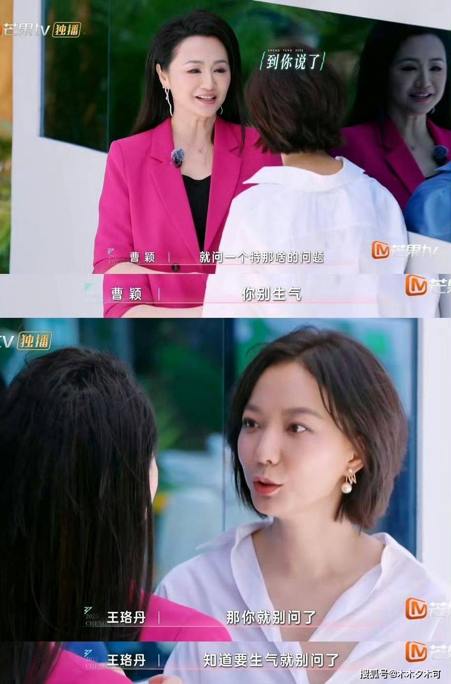 一开始曹颖是想主动找话题,好拉近自己与王珞丹的距离,于是提到了自己名字总被叫成瞿颖而闹了不少尴尬。紧接着她就想问王珞丹一个问题,还表示这个问题问出来后王珞丹可能会生气,没想到王珞丹直接不接她的话,直接把这个话题终结,很干脆的来了句“知道要生气就别问了”!