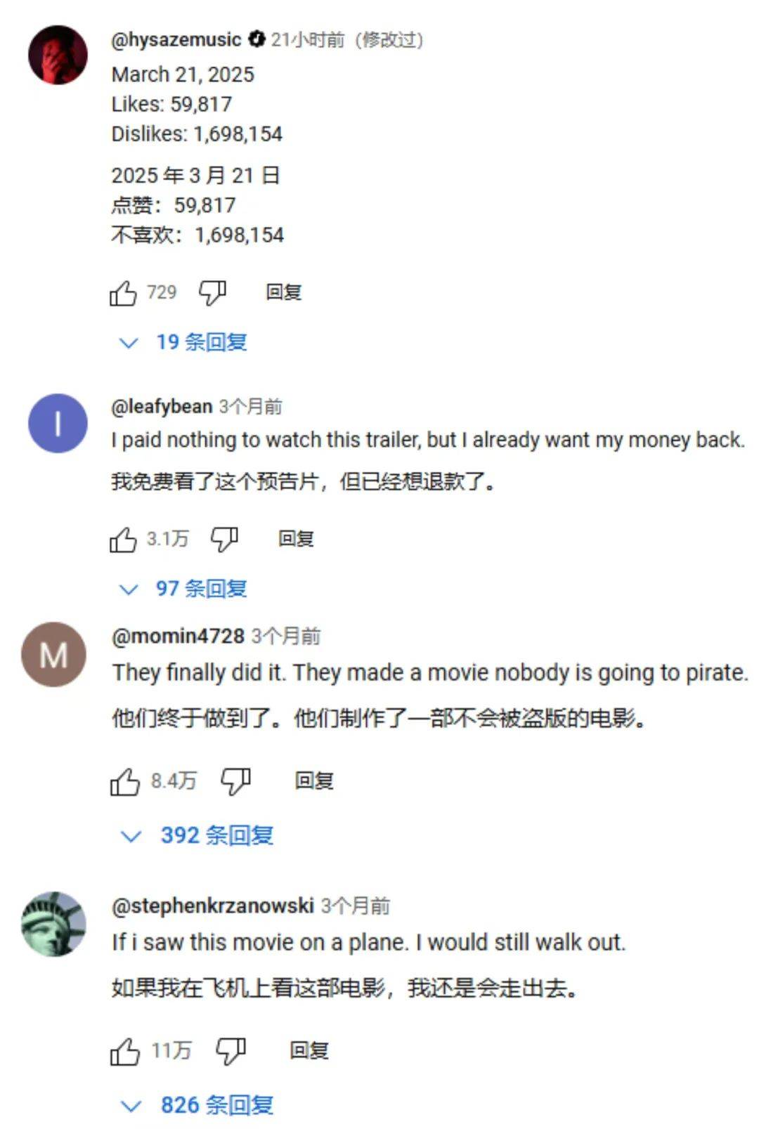 影片遭遇舆论灾难的起源,是齐格勒的肤色外形和原故事中“肤色胜雪”的白雪公主完全不符。迪士尼每每在油管发布预告片时,“踩”的数量都是几十倍于“赞”,可见大量反“觉醒”、反“政治正确”的观众对影片选角感到愤怒。