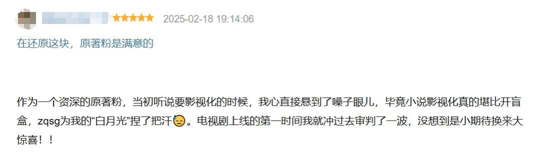 《难哄》原著以对桑延温以凡之间细腻的情感刻画著称,原著粉对影视化改编的期待与忐忑并存。好在,剧版《难哄》把原著粉“养的很好”,在社交平台上可以看到许多原著粉丝对于剧版《难哄》的高度评价:“作为一个资深的原著粉,当初听说要影视化的时候,我心直接悬到了嗓子眼儿,电视剧上线的第一时间我就冲过去审判了一波,没想到是小期待换来大惊喜。”