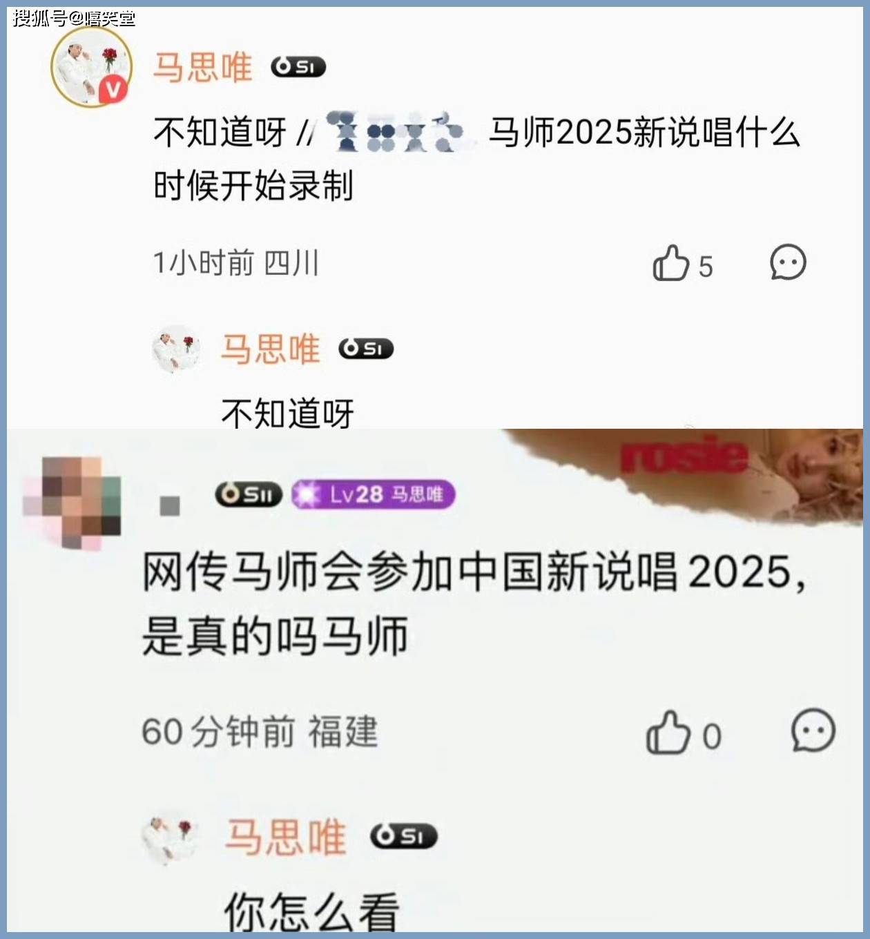 不过,在新专辑评论区,还是有大量网友关心一个网上的传言——马思唯到底去不去当《新说唱2025》导师。