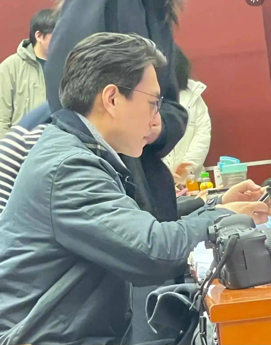 没想到中央戏剧学院博士的靳东也出现在了校园,上课之前他和陈佩斯老师打了招呼,弯腰握手致敬。靳东还特意捧着一个厚厚的笔记本,埋头苦写,仔细记着陈佩斯老师的一言一语!