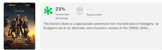 罗素兄弟执导的科幻电影《电幻国度》即将于下周上映,电影媒体口碑现已解禁。截止发稿,该片在M站均分仅为30分(1好评4中评4差评);烂番茄新鲜度仅为23%(5鲜17烂),有影评人吐槽《电幻国度》质量和《无主之地》一样糟糕。