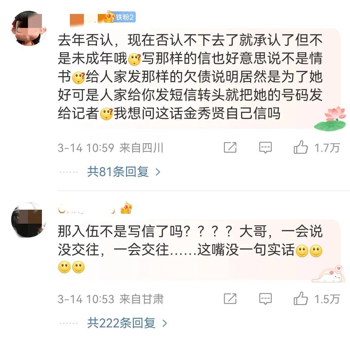 网友热议,对金秀贤的声明表示质疑和气愤。