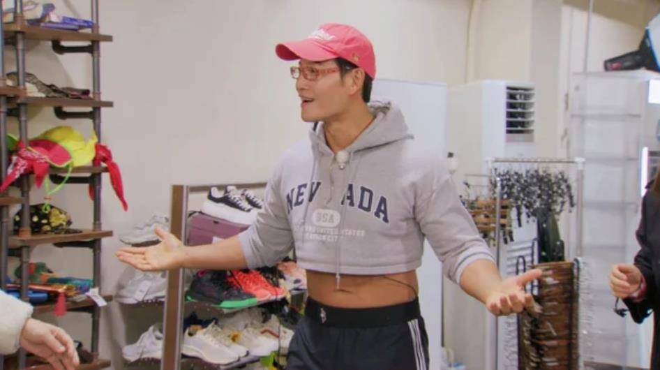 另一边,金钟国也没逃过“时尚改造”的命运!在“MZ忙内”智雅恩的搭配下,金钟国穿上了一件露脐上衣和热裤,直接变身“火热运动风”代言人!虽然一开始金钟国满脸抗拒,但当他秀出肌肉的那一刻,全场瞬间沸腾!成员们纷纷起哄:“这身材绝了!”“钟国哥,你这是要去参加健美比赛吗?”