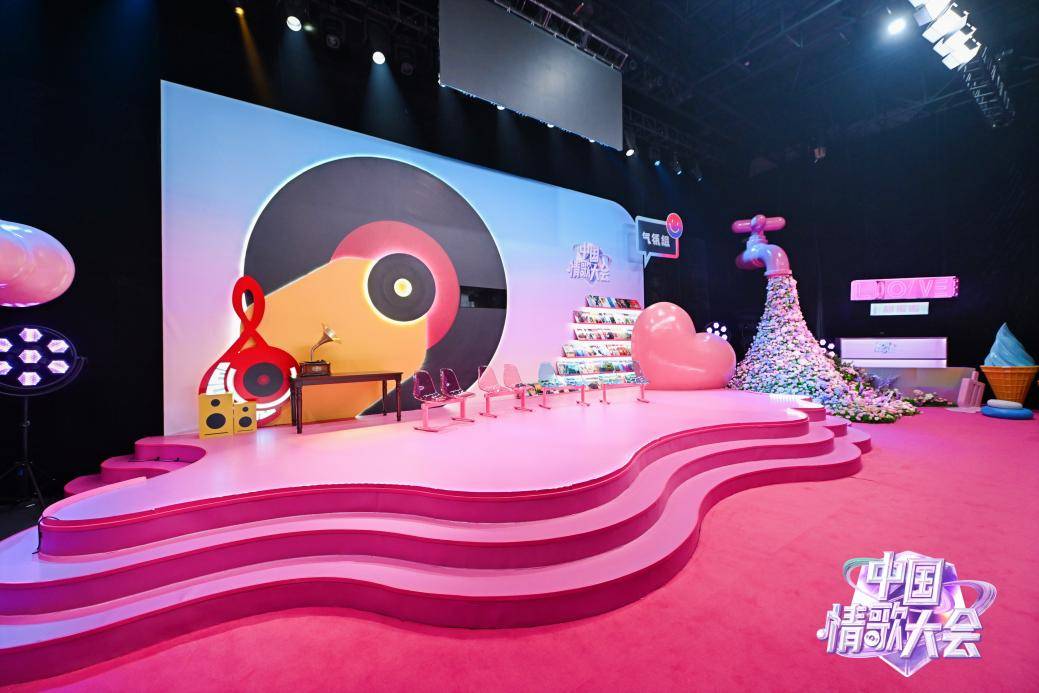 《中国情歌大会》节目组运用高饱和度的配色打造了充满爱情粉红泡泡的多巴胺乐园,带您沉浸式体验被爱包裹的浓情蜜意。