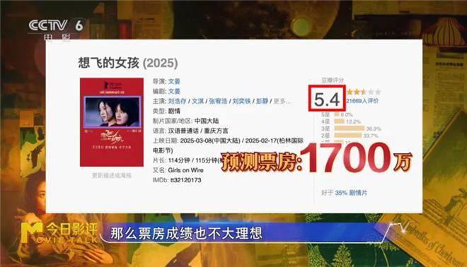 《想飞的女孩》上映首周票房不足2000万,豆瓣开分不到6分,这样的成绩在竞争激烈的电影市场中略显黯淡。