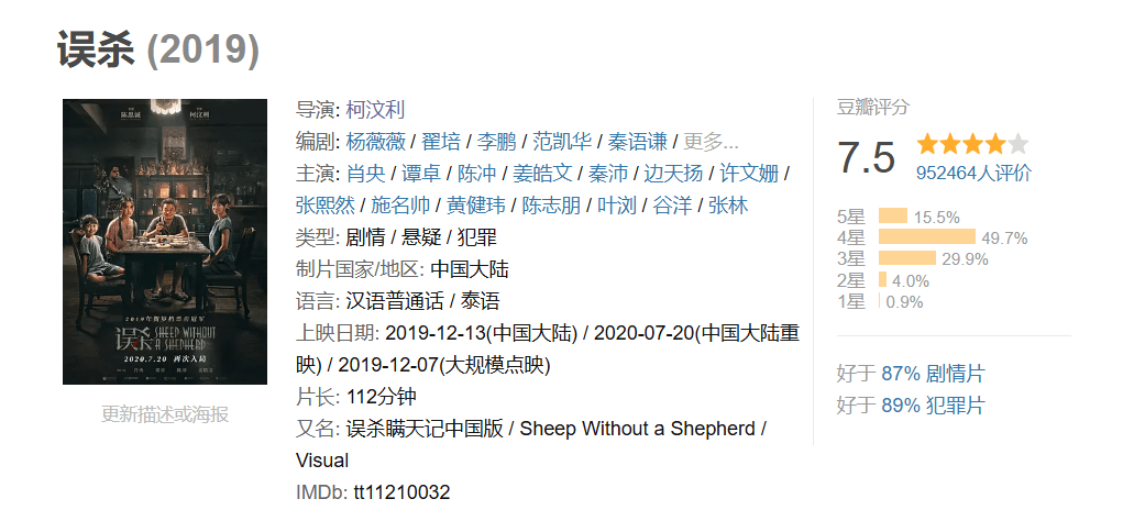 期间柯汶利先后执导了剧版《唐人街探案》和国产版《误杀》。