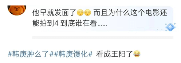 还有的网友表示,“韩庚早就发面了,不明白《前任》系列为什么能拍4”。也有的网友直言韩庚现在的样子,很像王阳。
