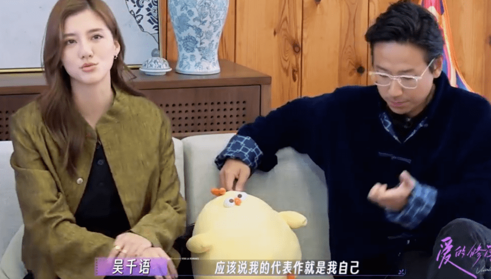 除了回应与现任男友的感情话题外,这些年因私生活备受外界关注的吴千语,节目中也有回应网友吐槽她究竟是演员还是网红,代表作只有感情的犀利评论,吴千语自信称:“我的代表作就是我自己”,高情商发言获朱丹王彦霖竖大拇指点赞。