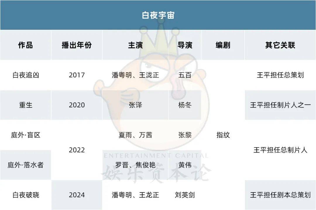 比如“白夜宇宙”已经有四部影视作品,其中一部律政剧《庭外》又包括两部故事。和腾讯视频做《鬼吹灯》系列剧的“尽量原班底”特色不同,“白夜宇宙”带着多方对系列剧制作的意识。