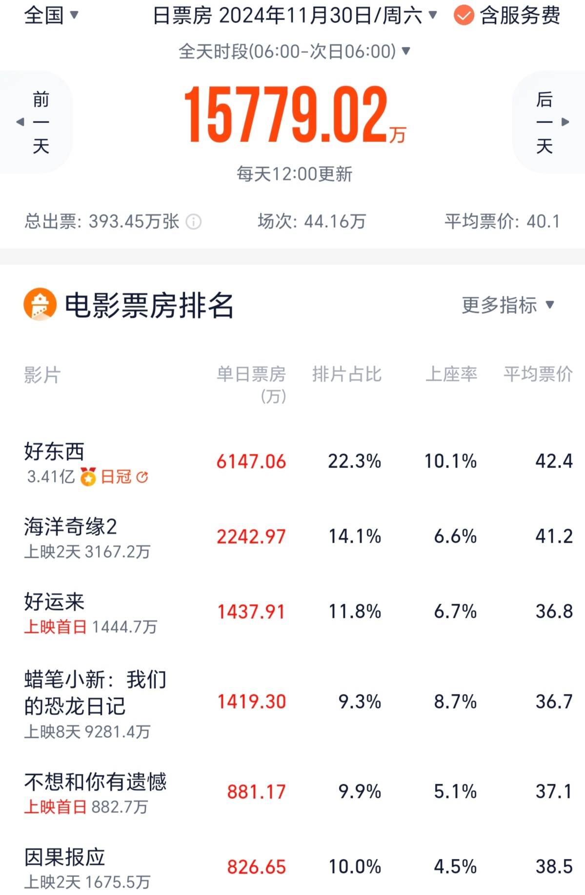 白客、乔杉、王大陆、黄才伦、李佳琦等主演的喜剧《好运来》首日票房1438万元,排在日榜第三。
