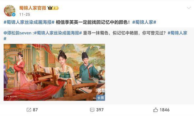 从11月25日我就发现《蜀锦人家》官微不太对劲,那一天宣发就和暑假最后一天赶作业一样,一天内完成了所有KPI,看着那滚滚而来的各种剧情物料,我就知道这是要“抬”上来的节奏。