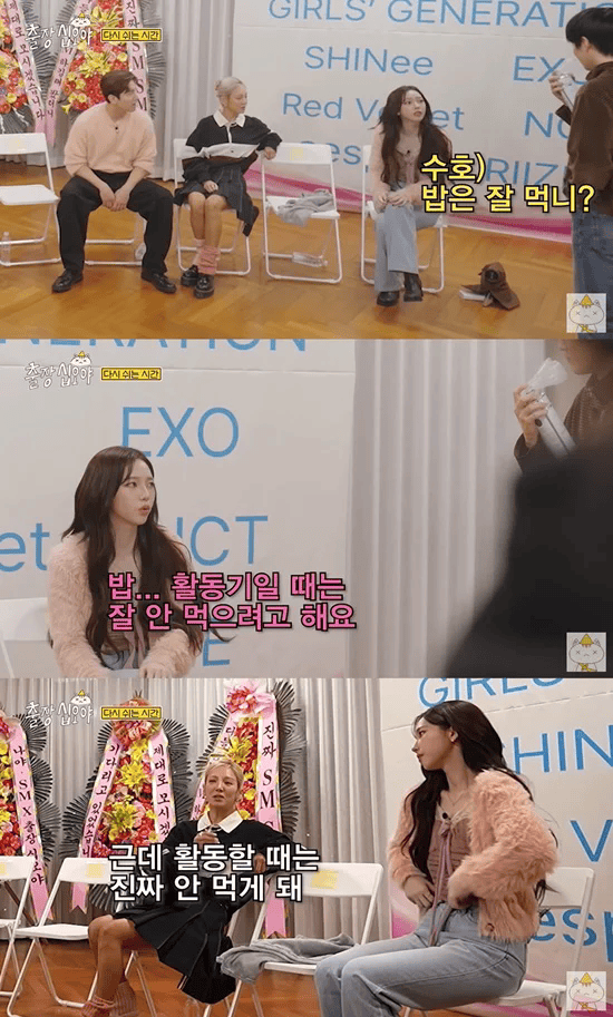 据韩国媒体11月30日报道,在29日播出的综艺节目《出差15夜》中,SM娱乐的艺人们齐聚一堂,大家都在聊些轻松的事儿,氛围还挺好。然而,话题一转,孝渊问柳智敏:“吃饭了吗?”结果柳智敏毫不掩饰地回答:“没吃”,哎哟,这不禁让人心疼,活动忙起来,饭都没时间吃吗?