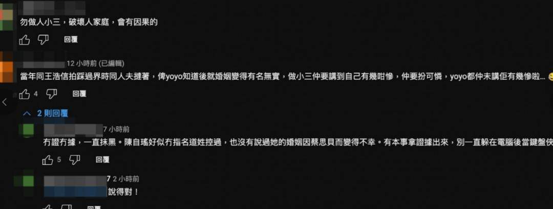 有网民激动留言:“做小三还要讲自己有惨,还要扮可怜,yoyo都还未讲她有惨啦…”,而有支持蔡思贝的网民还击:没证没据,一直抹黑。陈自瑶好似都没指名道姓控诉过!