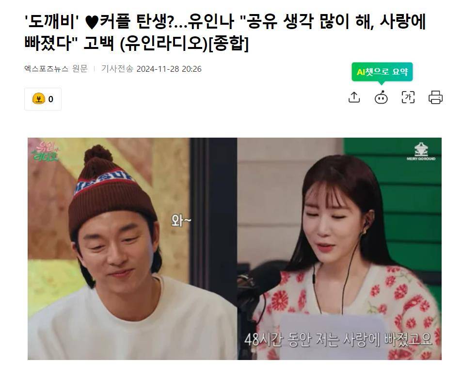宝子们!今天给大家带来一份甜蜜又搞笑的重逢故事——有韩国媒体报道,刘仁娜和孔刘这对《鬼怪》兄妹在11月28日公开的《Yoo In Radio》节目中久违相见!虽然已经过去七年,但两人那种自然又温暖的互动,直接让粉丝梦回2017年的《鬼怪》片场!