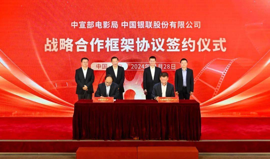 11月28日下午,中宣部电影局与中国银联股份有限公司正式签署战略合作框架协议。中宣部副部长、中央广播电视总台台长慎海雄,中国人民银行副行长陆磊与中国银联党委书记董俊峰共同见证合作签约。中宣部电影局主持日常工作的副局长毛羽与中国银联执行副总裁胡浩中代表双方签约。中宣部国际传播局副局长兰斌出席活动。