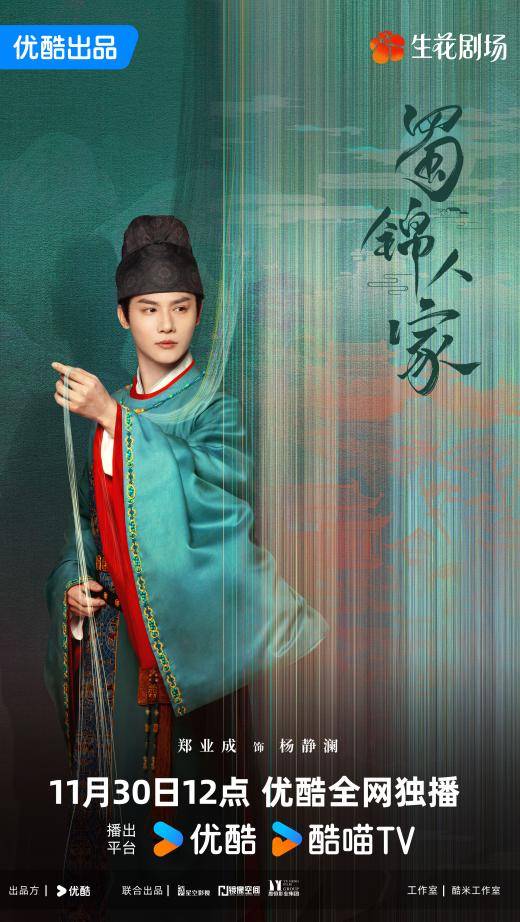 由优酷出品,四川星空影视文化传媒有限公司、北京镜像空间文化传媒有限公司、愚恒影业集团联合出品的古装传奇剧《蜀锦人家》今日官宣定档,该剧由周静、阮杰任总制片人,刘海波任总导演,沈阳、贲放导演,汪洪任总编剧,赵眠、薛会敏编剧,谭松韵领衔主演,郑业成、经超、陈小纭领衔主演,王艺诺领衔出演,将于11月30日午12点,优酷全网独播。