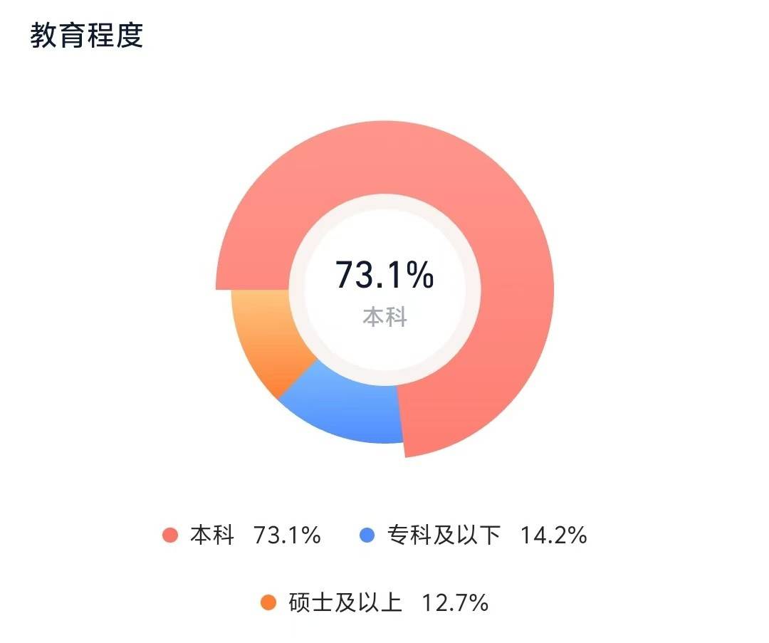 再看影片受众的教育水平分布,其中本科学历占到73.1%,硕士及以上学历占到12.7%,也就是说,《风流一代》的受众群中,本科及以上学历的超过了85%。