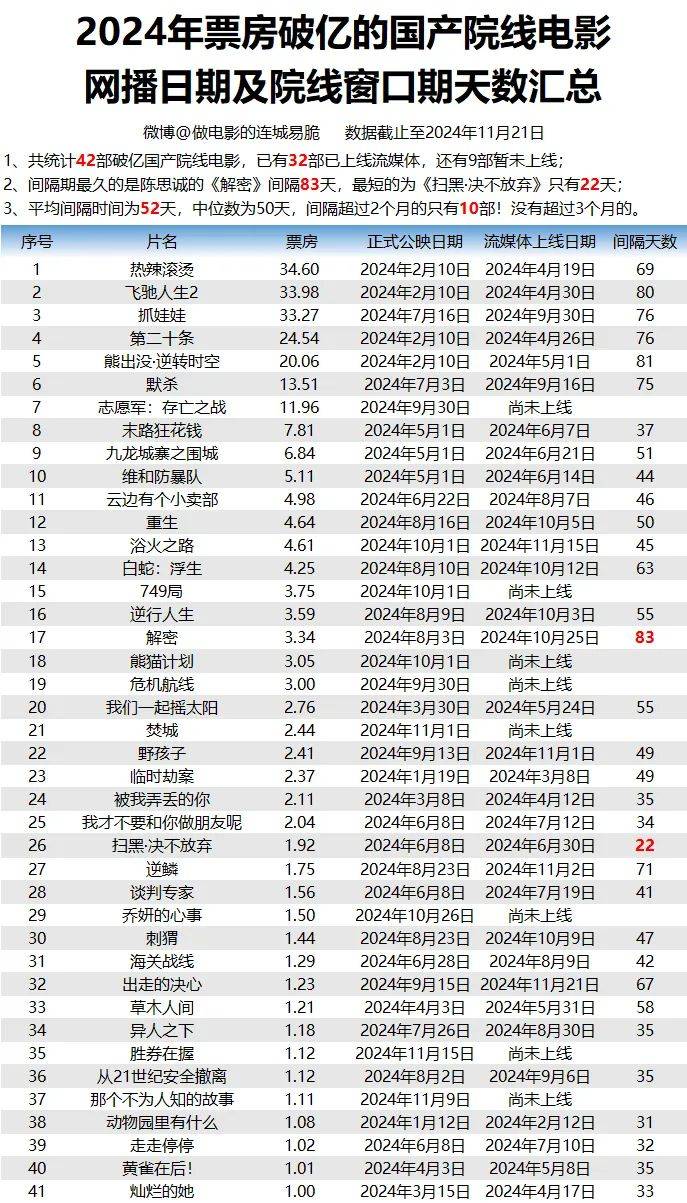 票房不如意的,则会尽量压缩时间,甚至无缝衔接。
