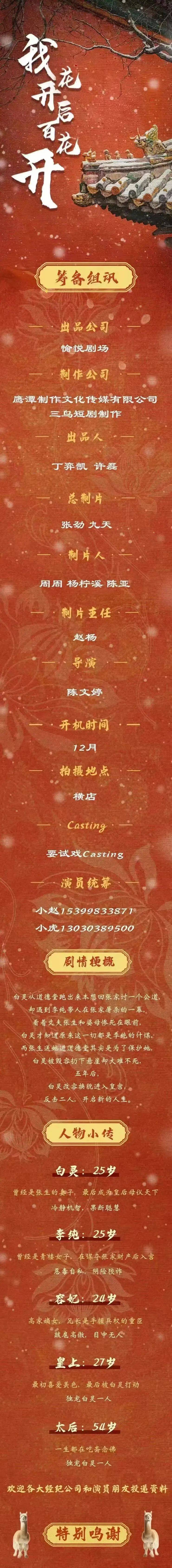 目前线上筹备,具体见组地址另行通知,欢迎各位经纪人演员老师踊跃投递资料。