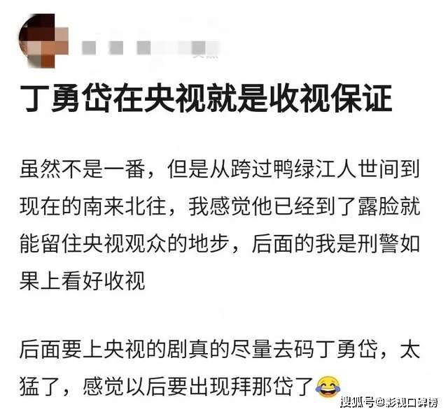 最后就是丁勇岱了。相较于于和伟的什么都演和默默沉淀,富大龙的会选剧本和稳定演技,他是会选合作团队。他合作的导演都是孔笙,郑晓龙,张艺谋等影视圈有名有姓的导演,算是另一种形式的背书,大导演的加盟会让项目的可信度提升,让演员更加确信剧组是可靠的。正是因为如此丁勇岱几乎每部剧的质量都还不错。甚至有网友表示:丁勇岱在央视一露面,那这部剧的收视率铁定稳了。