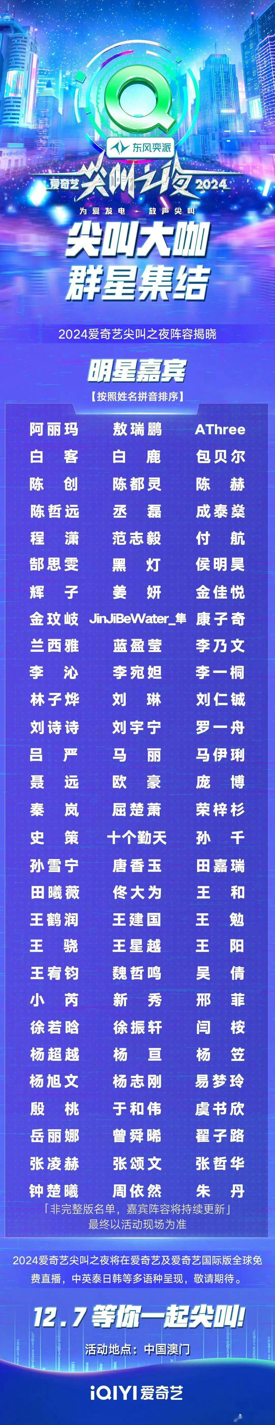 爱奇艺官宣《尖叫之夜》明星嘉宾!新说唱前四名都在:
