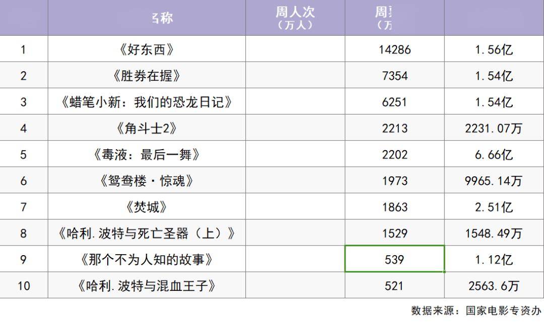 国产新片《好东西》以1.56亿元周票房位列周榜冠军,周六较周五开画上涨101%,涨幅对于常规时间开场的新片非常不错。