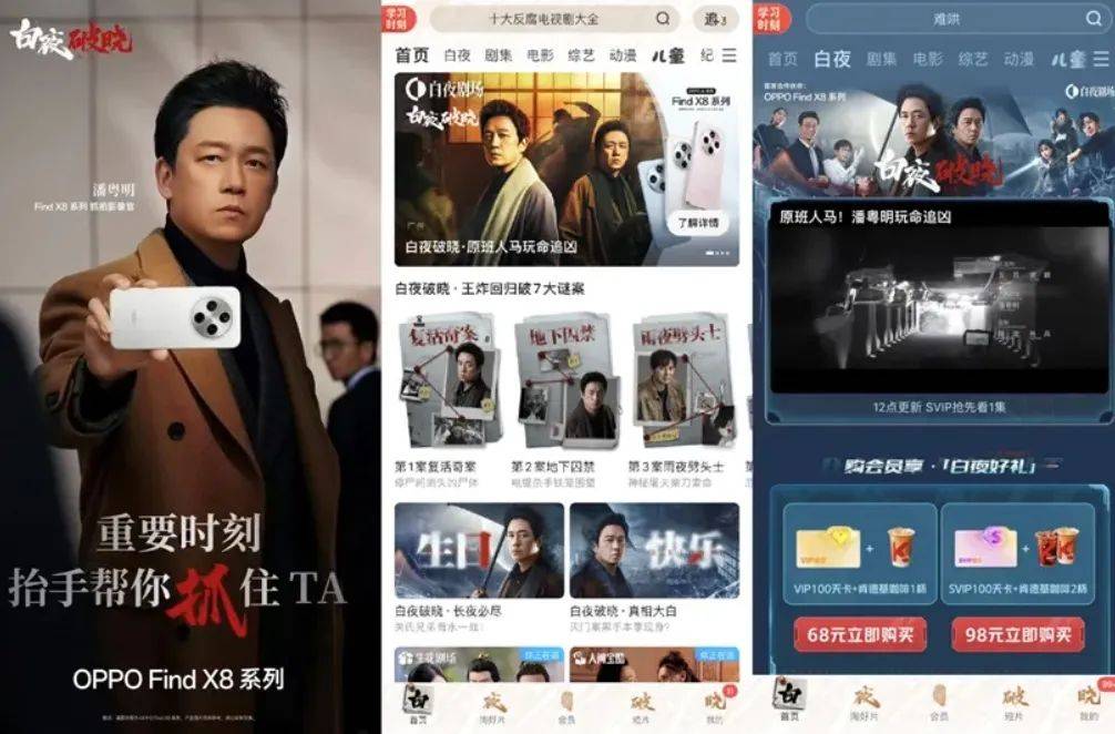 此外,另一个值得关注的剧集投放新现象,是如今剧方给冠名商提供了越来越多元、向综艺冠名看齐的综合营销服务。比如这次的OPPO Find X8系列之于《白夜破晓》——