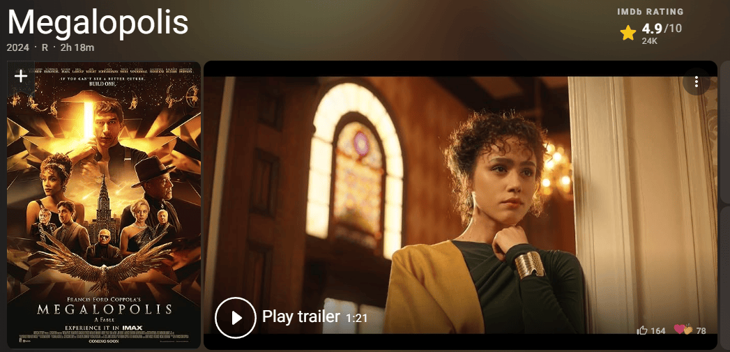 他在其中肆意暂停时间、推举人类领袖,强行融合古罗马和纽约这两个根本不兼容的跨时空城市,最终让影片不伦不类,如同在宿醉、嗑药、梦魇中沉沦和呓语。