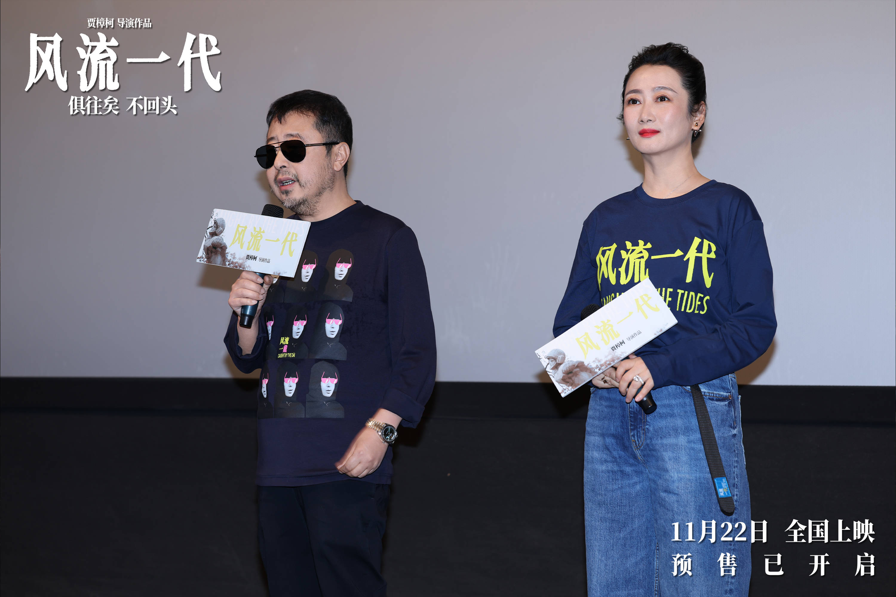 由贾樟柯执导、赵涛主演的时代爱情电影《风流一代》将于11月22日全国上映。11月20日,贾樟柯和赵涛共同现身济南路演,与观众进行映后交流与互动。活动现场热闹非凡,不仅有观众邀请两人一同“蹦迪”,复刻贾樟柯电影名场面,还有观众趣味cos(角色扮演)贾樟柯,引得现场笑声连连。