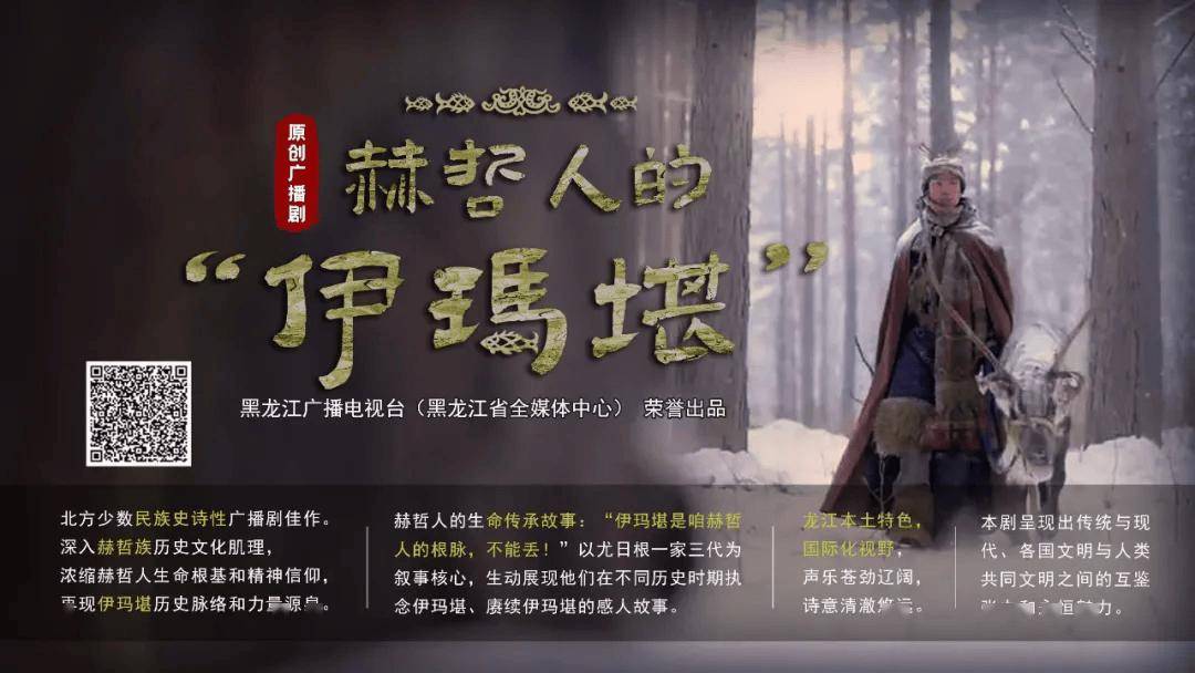 黑龙江省委宣传部、上海市委宣传部、福建省委宣传部推荐,黑龙江广播电视台(黑龙江省全媒体中心)制作的原创广播剧《赫哲人的“伊玛堪”》,讲述了赫哲族尤日根一家三代人与“伊玛堪”生死相依的故事。该剧跨越八十年时空,以赫哲人挖掘保护传承文化瑰宝“伊玛堪”为主线,反映了赫哲族从抗日战争时期到新中国成立,再到改革开放和社会主义新时代的民族发展史、文化传承史和生活变迁史。