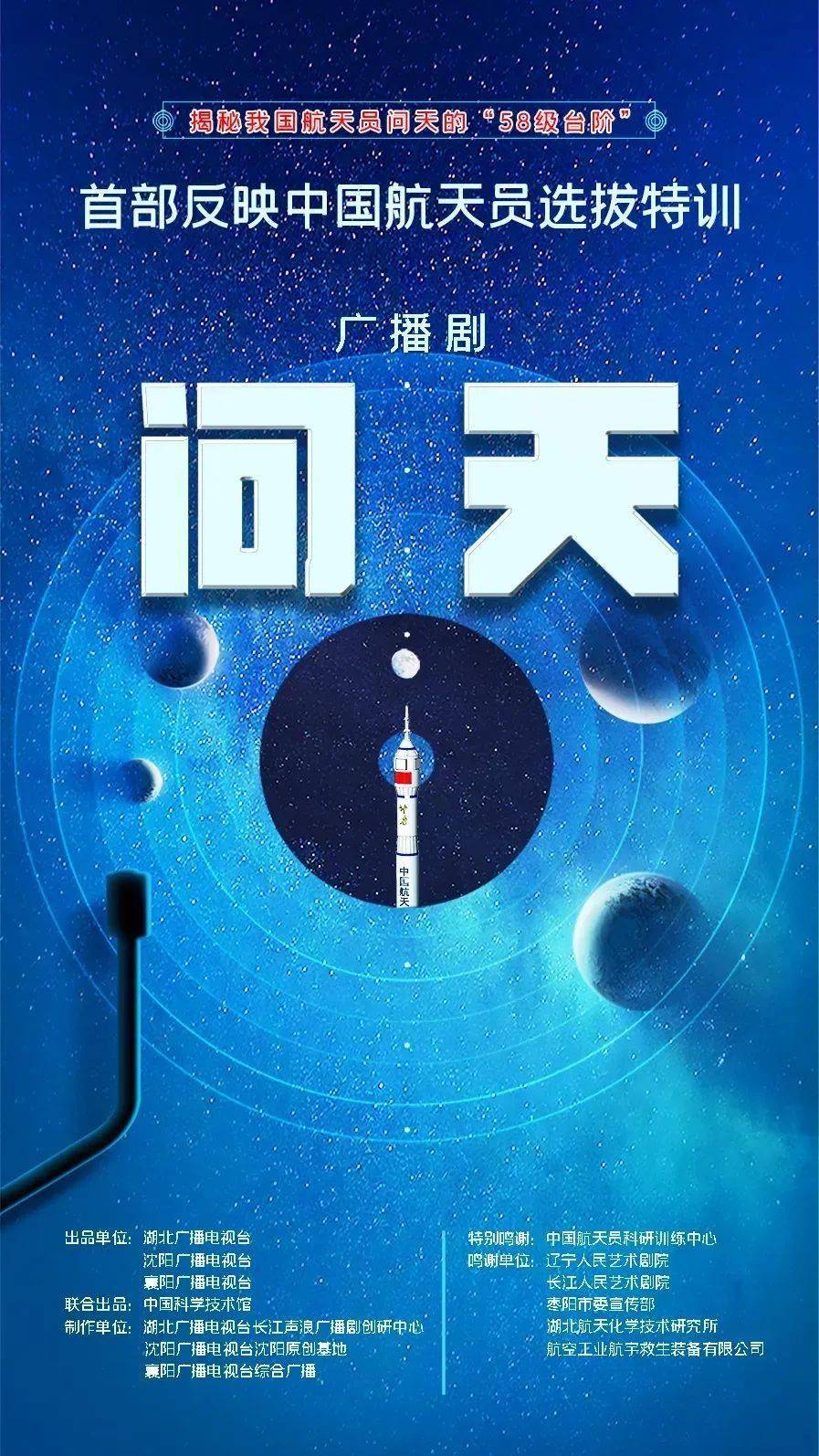 湖北省委宣传部、辽宁省委宣传部推荐,湖北广播电视台、沈阳广播电视台、襄阳广播电视台出品的广播剧《问天》,以我国载人航天重大节点性事件为背景,成功塑造了以聂海胜等为代表的中国航天英雄群像,挹取了第一代航天员的典型事例,通过展现我国首批航天员的成长过程,深刻诠释了中国航天员不计小我、祖国至上、知难而进的励志故事,堪称一部用声音写就的航天史诗。