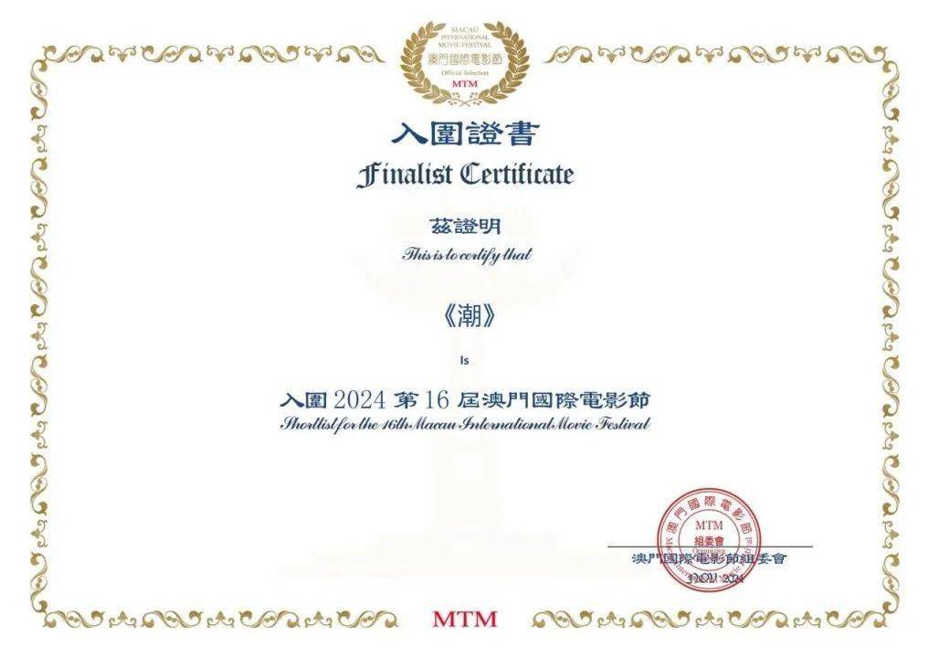 继入选国际A类电影节上海国际电影节后,《潮》再度获得国际电影节的认可,相继入选第十六届澳门国际电影节主竞赛单元以及提名第30届印度加尔各答国际电影节亚洲影评人联盟奖!