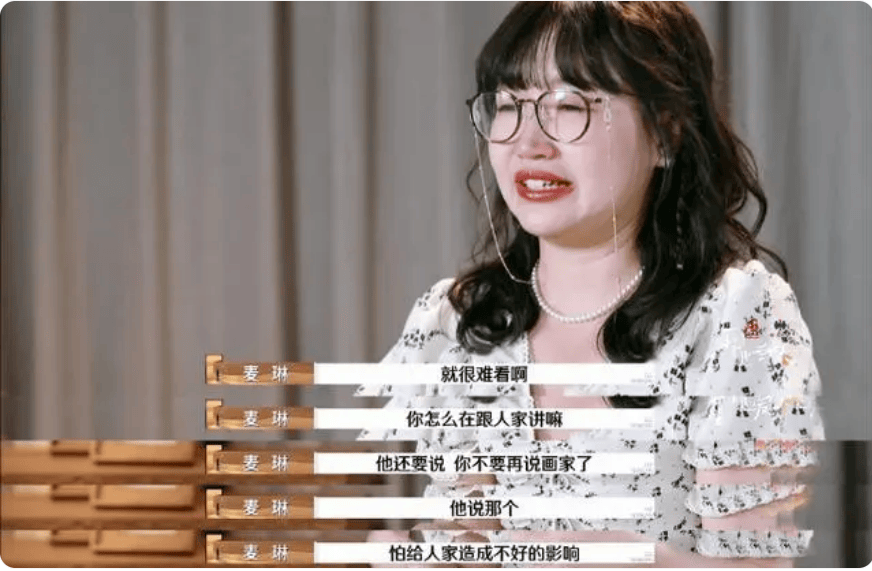 不止现场其他嘉宾听到麦琳这个笑声坐在那里一动不敢动,就连演播室里观察团的各位都愣住了。