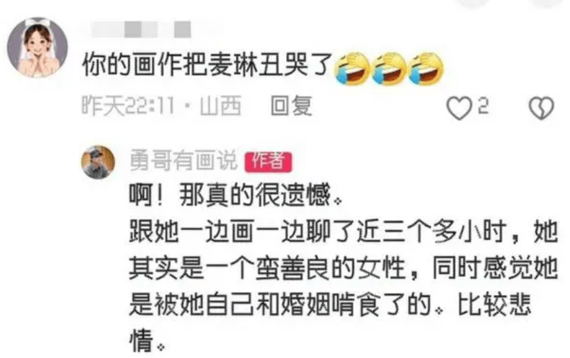 到麦琳这里,被画师笔下的自己给丑哭了?