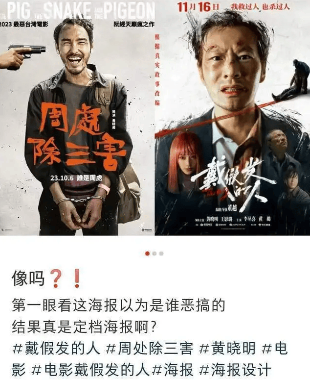 《戴假发的人》上映前,定档海报过分山寨《周处除三害》,很多网友甚至觉得有抄袭嫌疑,还以为是恶搞的,更是拉低了期待值!