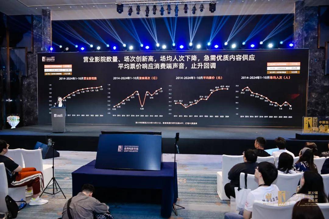 王舒同时罗列关键指标,如2024年1-10月全国影院营业依然达到13000多家,银幕数接近8万块,再创历史新高。其中新建影院数量832家,尤其是新建LED厅等的影院占比较多,在充足的影院基数上,今年放映场次总数亦创新高。