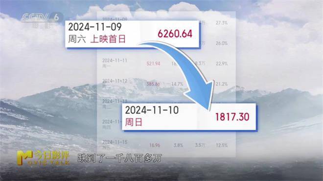 电影首日票房斩获6260万元,创造了国庆档以来的国产电影最佳的开画票房,超过了最近一个月由、主演的和、主演的,甚至比暑期档的都要高,但是电影上映的第二天,票房直接从六千多万跌到了一千八百多万,落差和悬殊都是非常大的。