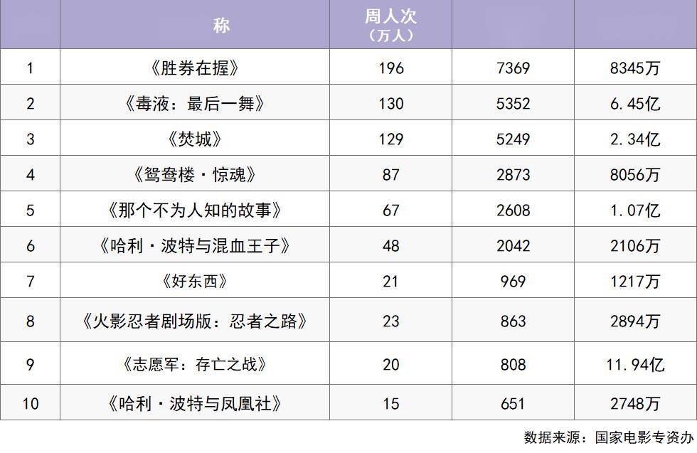 《胜券在握》位列周榜冠军,收获票房7369万元,该片为上周上映的新片,截至目前,累计票房达8122万元。
