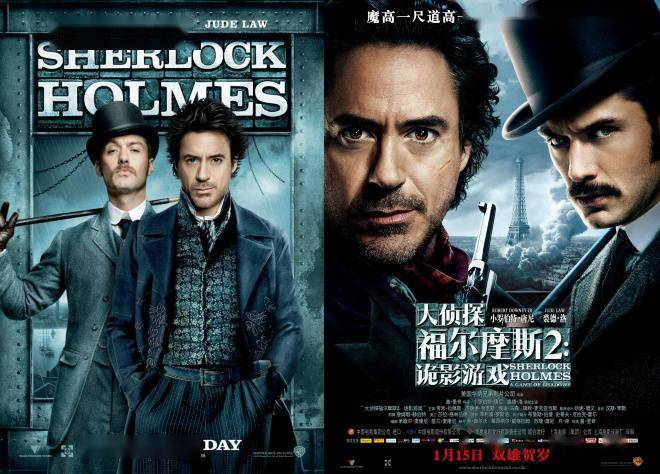 系列电影《大侦探福尔摩斯》改编自柯南·道尔所著经典侦探小说,由盖·里奇导演,小罗伯特·唐尼饰演夏洛克·福尔摩斯,裘德洛饰演约翰·华生,第一部于2009年上映。