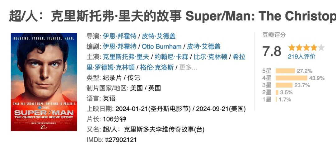 关于昔日超人饰演者克里斯托弗·里夫的纪录片,标题都很有意思,把super man 分开了,寓意也很明显了。