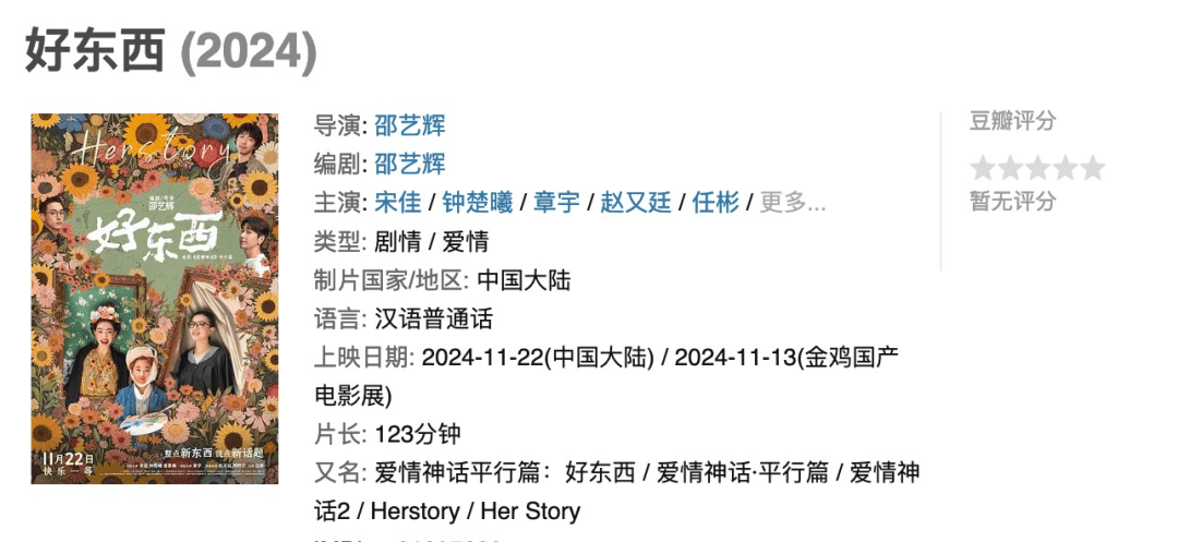 这绝对是本周最热门话题影片了吧,邵艺辉导演的上一部《爱情神话》评价就非常好,我也非常喜欢。