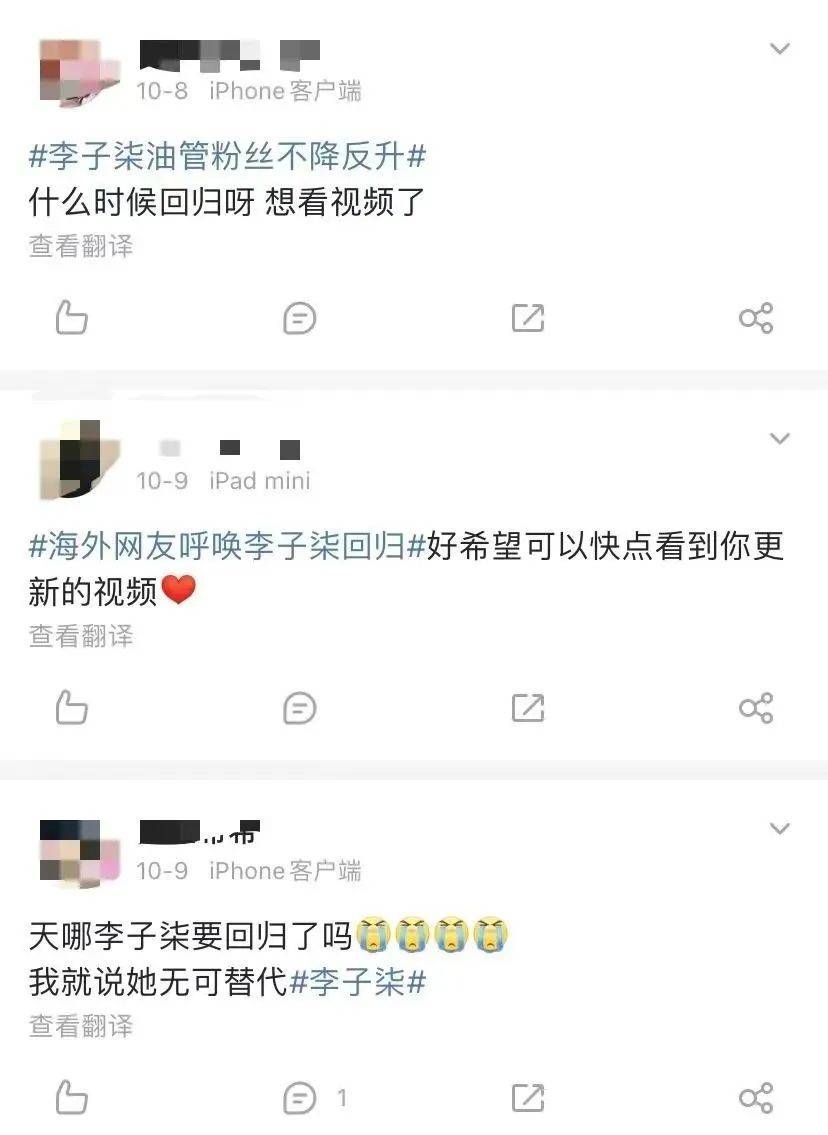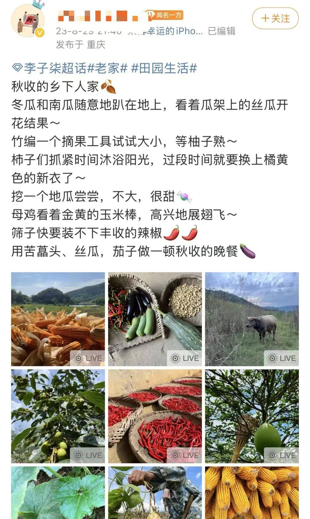 微博上有个博主叫“今年李子柒更视频了吗”,但微博内容并非完全关于李子柒,甚至只有一小部分,她会转发李子柒的视频表达自己对田园生活的向往,有时候更多是看完视频后,喜欢李子柒视频里转发抽奖的小礼物。