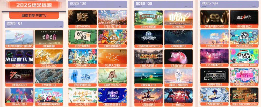综上,芒果双平台透过一场招商会吹响了霸屏2025综艺市场的嘹亮号角,片单上大小综艺项目已经鳞次栉比地铺满了Q1、Q2、Q3、Q4的全年排播带。