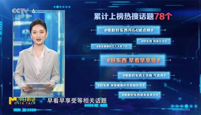 其中电影《胜券在握》通过扫楼、超前观影等活动在社交媒体热度上博得关注,电影《好东西》路演后上榜多个微博话题,热度持续攀升,更有#好东西早看早享受#等相关话题提前发酵,给影片未来正式上映打好了口碑基础。