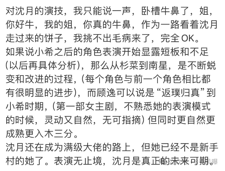 但在某些戏份中沈月的表演也被指责用力过猛,表情夸张。