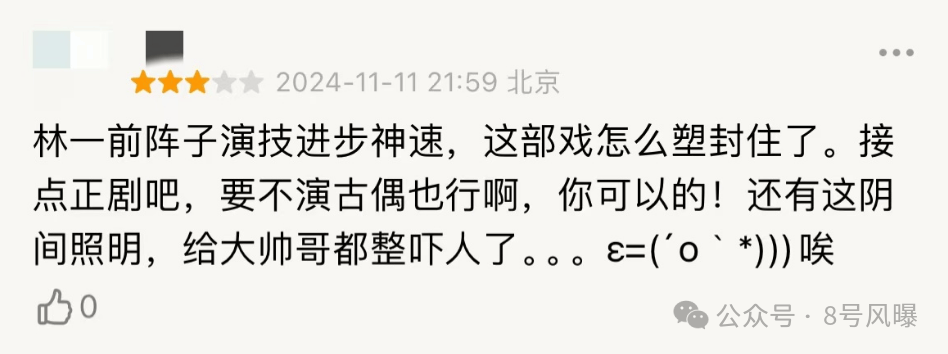 有人认为林一在剧中只演出了一个普通高冷男的形象,木讷呆板的演技并不能让观众感受到男主患病的痛苦与挣扎。
