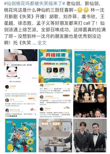 在古偶摇人大战的影响下,《失笑》开播前,林一和沈月也找了不少圈内好友宣传新剧,刘亦菲、胡歌、王星越等人都来捧场。