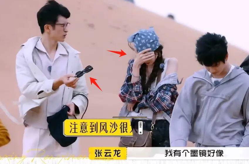 在沙漠会主动关心娜扎有没有被风沙迷眼,天气不佳会关心冷不冷,这些相处中的细节一点一滴被娜扎看到并接受。