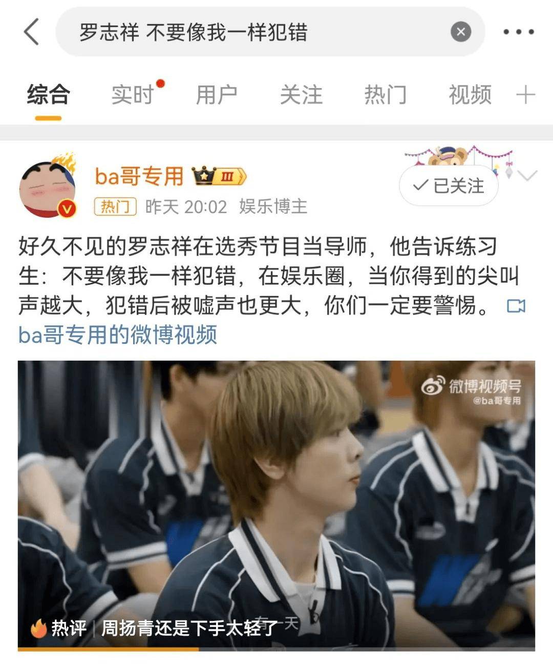 最近罗志祥在选秀节目当导师,他告诉练习生:不要像我一样犯错,在娱乐圈,当你得到的尖叫声越大,犯错后被嘘声也更大,你们一定要警惕……
